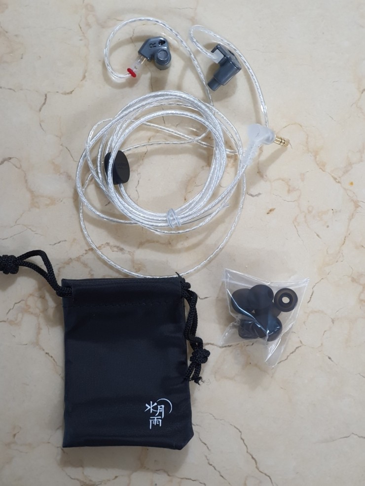 구성품은 이어폰 본품, 2PIN 케이블, 이어 팁 3쌍, 조그마한 파우치가 들어있습니다