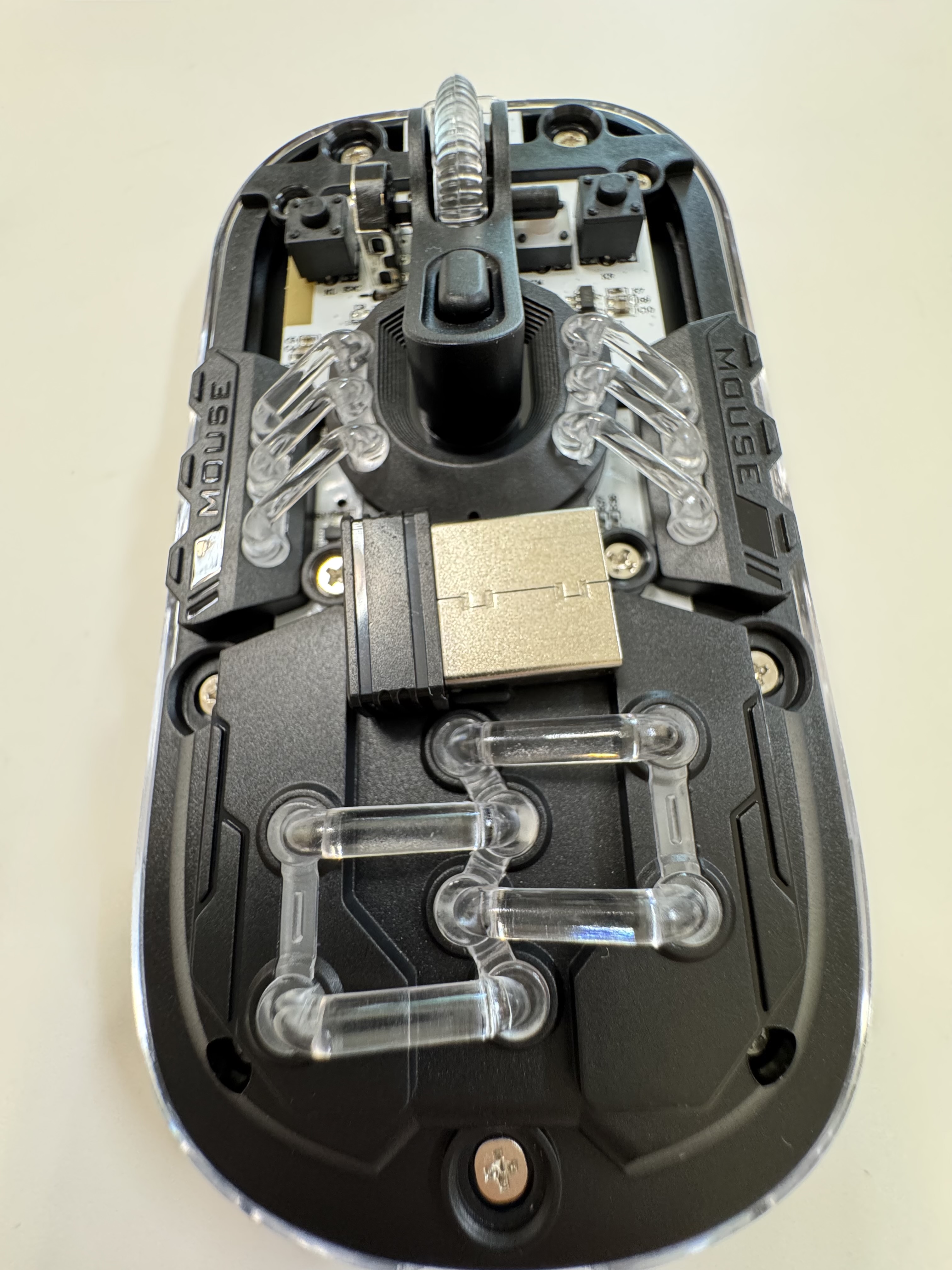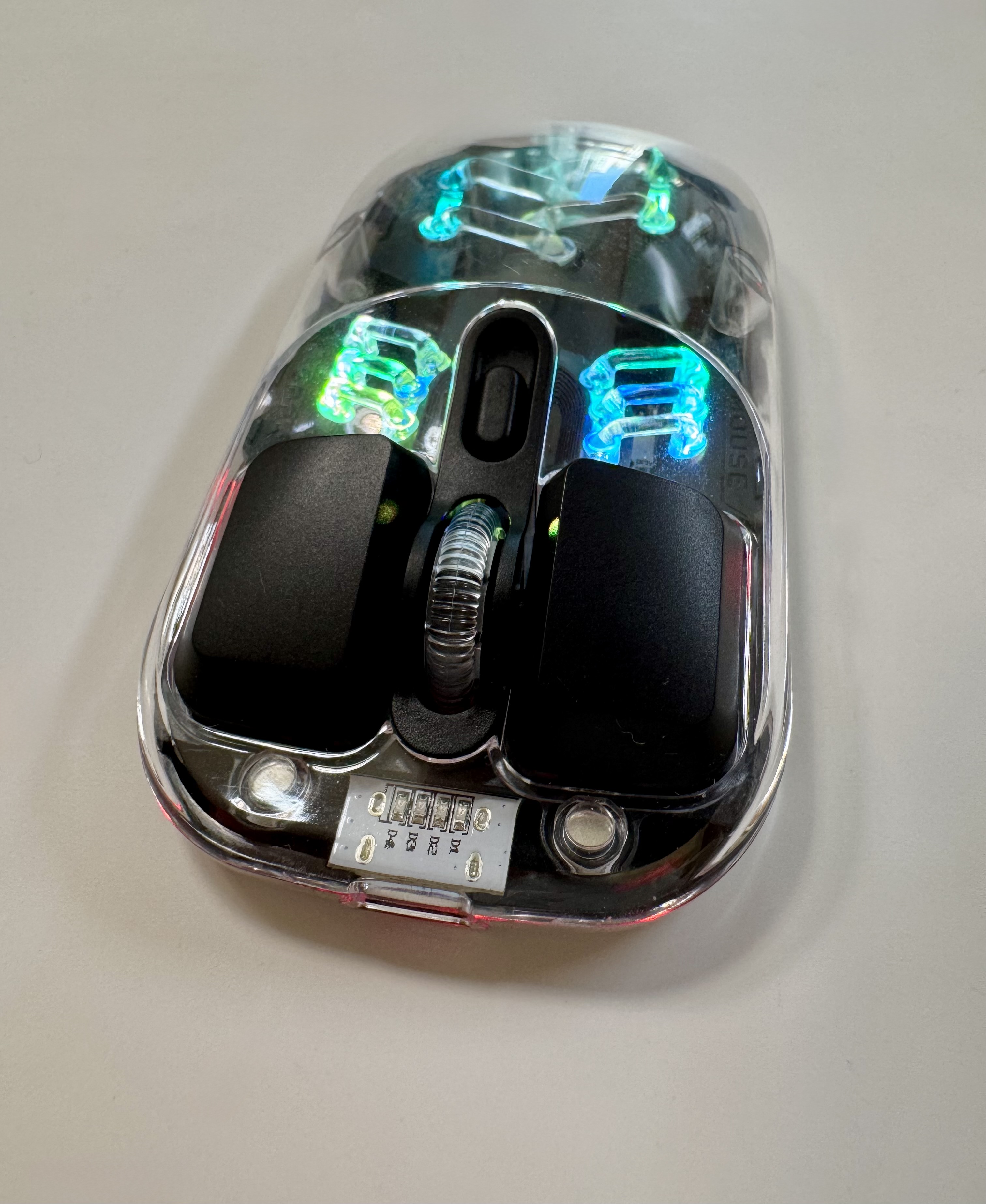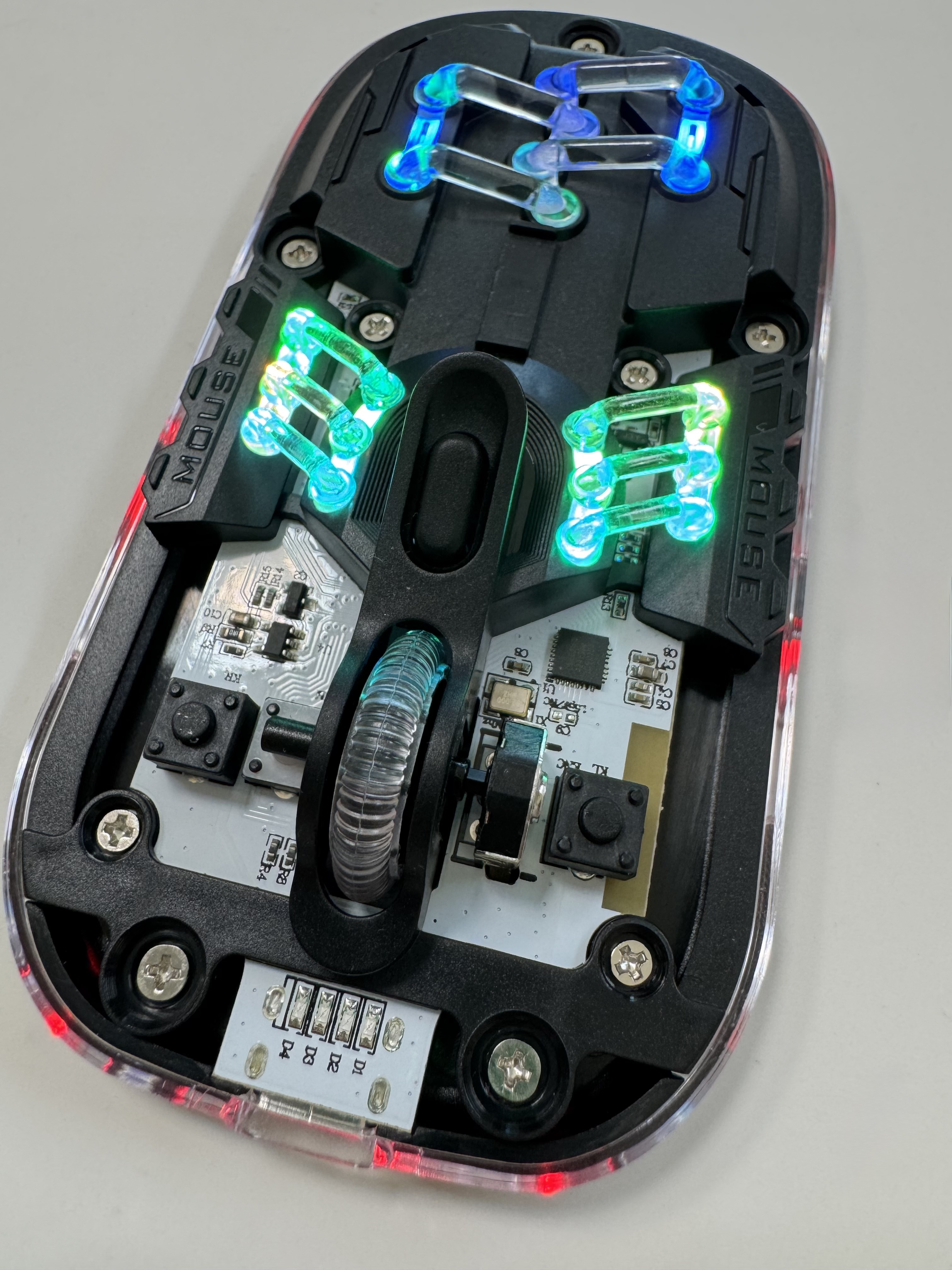 마우스 내부는 매우 투명하게 되어있고 반도체 회로도 보입니다