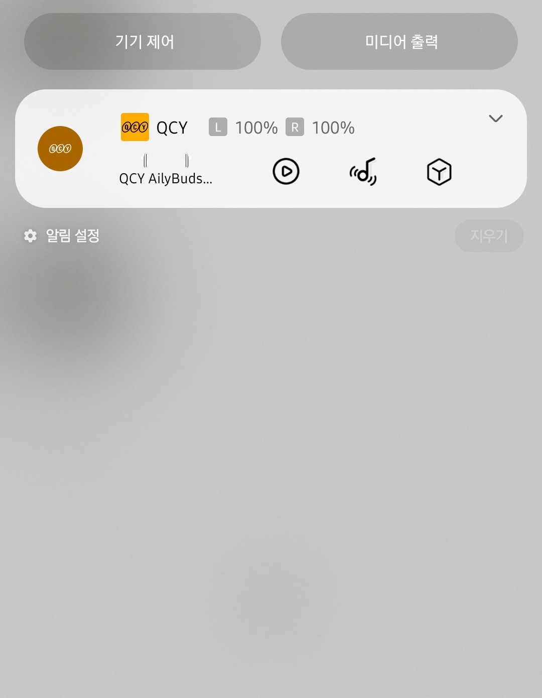 스마트폰 상태창에서 바로 노이즈 캔슬링을 ON/OFF 하는 버튼이 없습니다